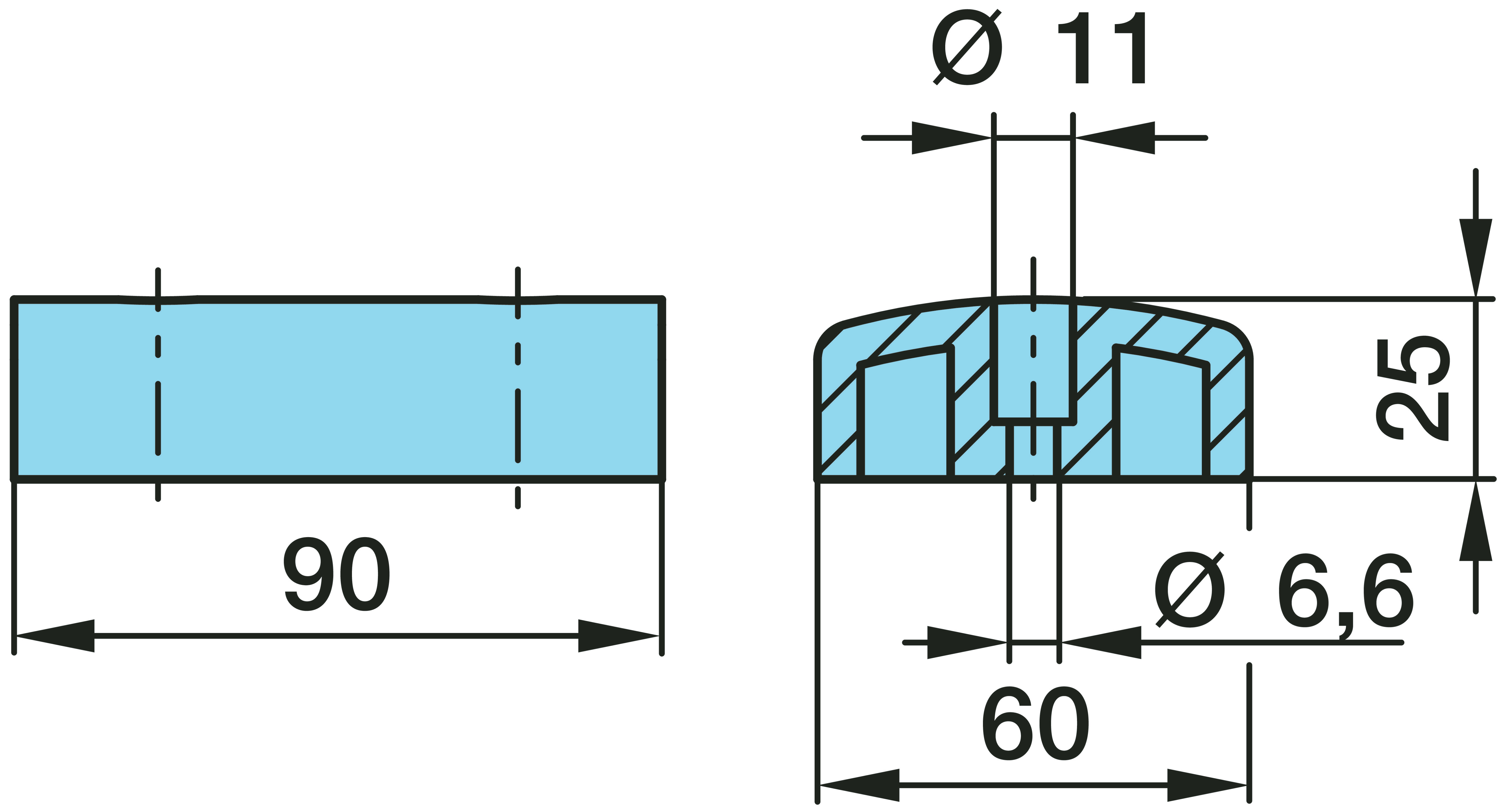 02.3506.06.00 AMG Artikel-Nr. 02.3506.06.00 Anschlag-/Befestigungspuffer1 ANSLAG- /FASTGØRELSESBUFFER 90 X 60 X 25 MM, FOR SSZ-VDS