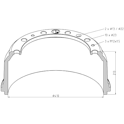 036.404-00A AMG Item No. 036.404-00A Brake Drum1 BREMSETROMLE P.F. MAN - 410X160/140