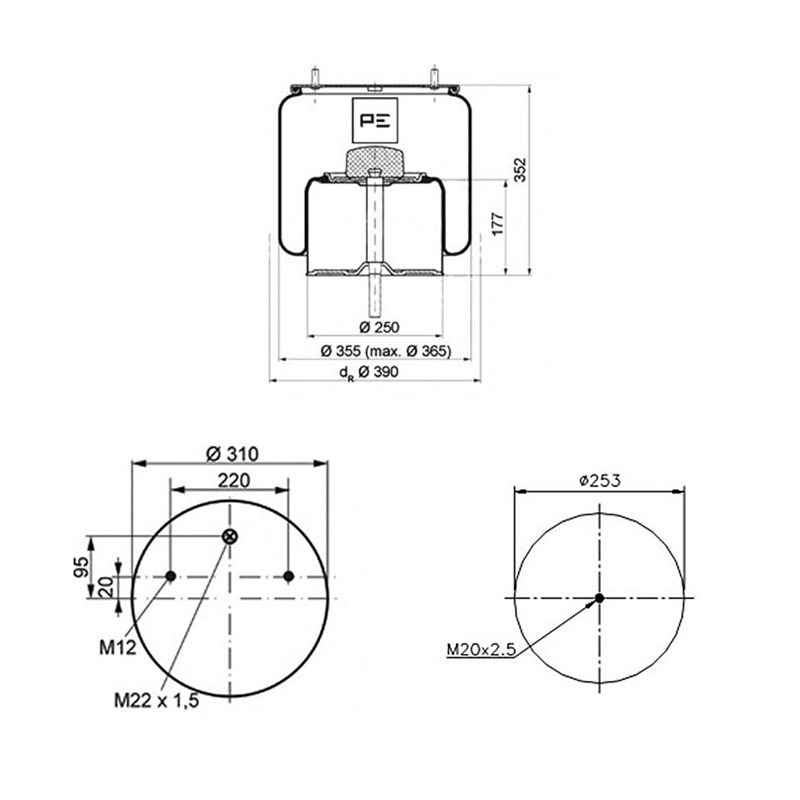 084.020-71A AMG Item No. 084.020-71A Bellow, air suspension1 KOMPLET LUFTPUDE FOR GIGANT, METAL BUND