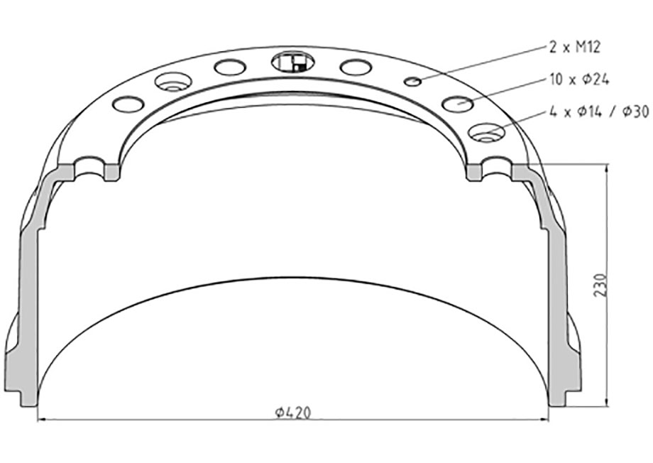 106.016-00A AMG Item No. 106.016-00A Brake Drum1 DAF BREMSETROMLE 420X170 MM