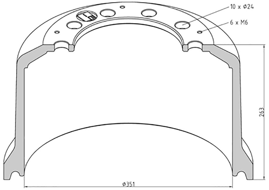 266.595-00A AMG Item No. 266.595-00A Brake Drum1 ROR BREMSETROMLE - 350X200 MM