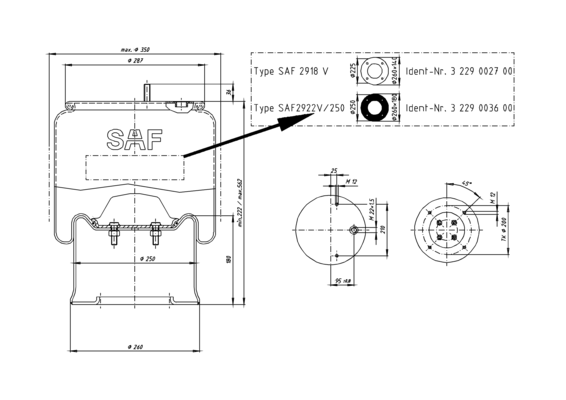 03229003600 AMG Item No. 3.229.0036.00 Bellow, air suspension1 SAF LUFTPUDE 2922V
