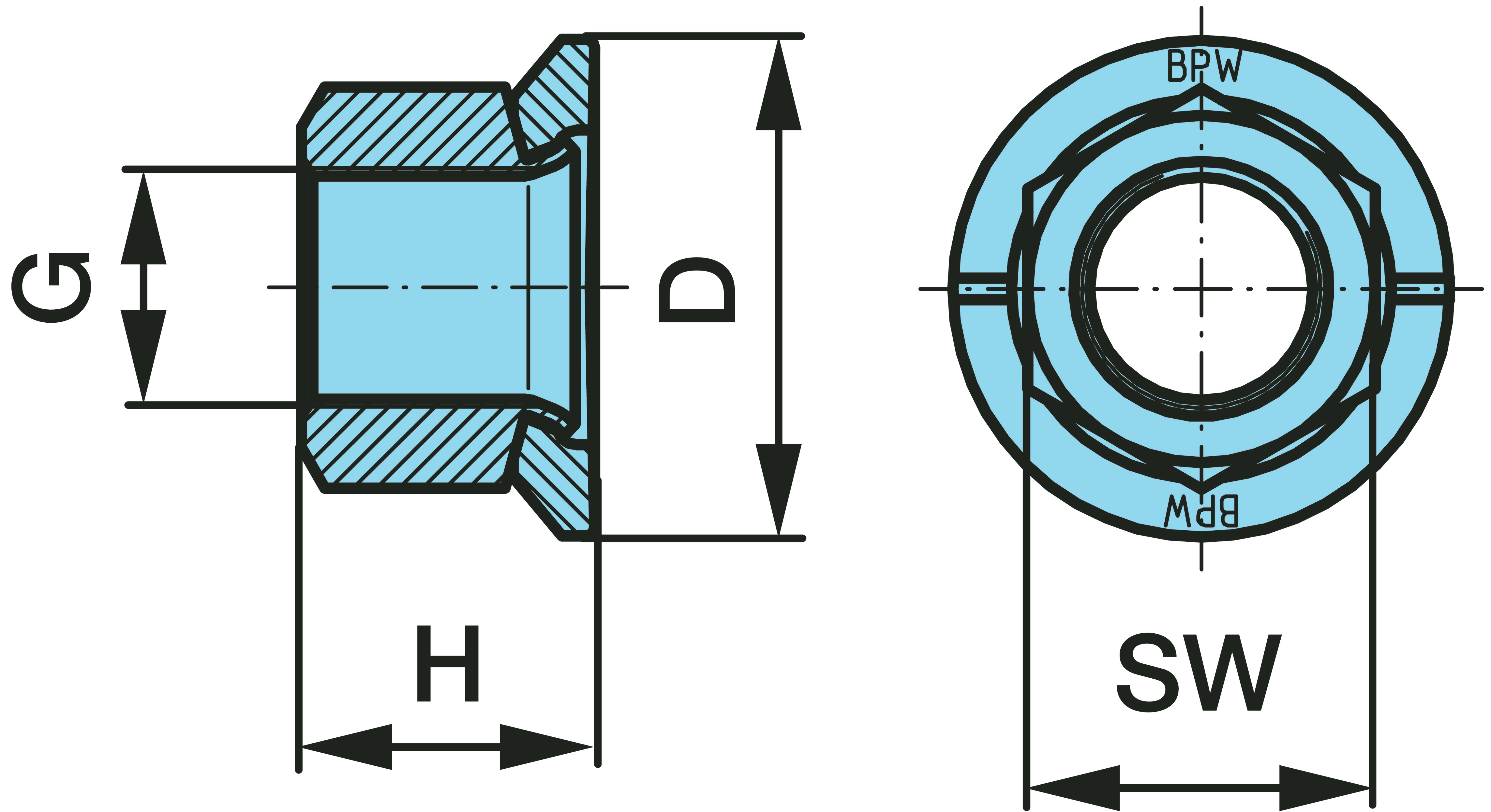 Dimension: M 22 x 1,5 - 10 / SW 32 / H 26,1