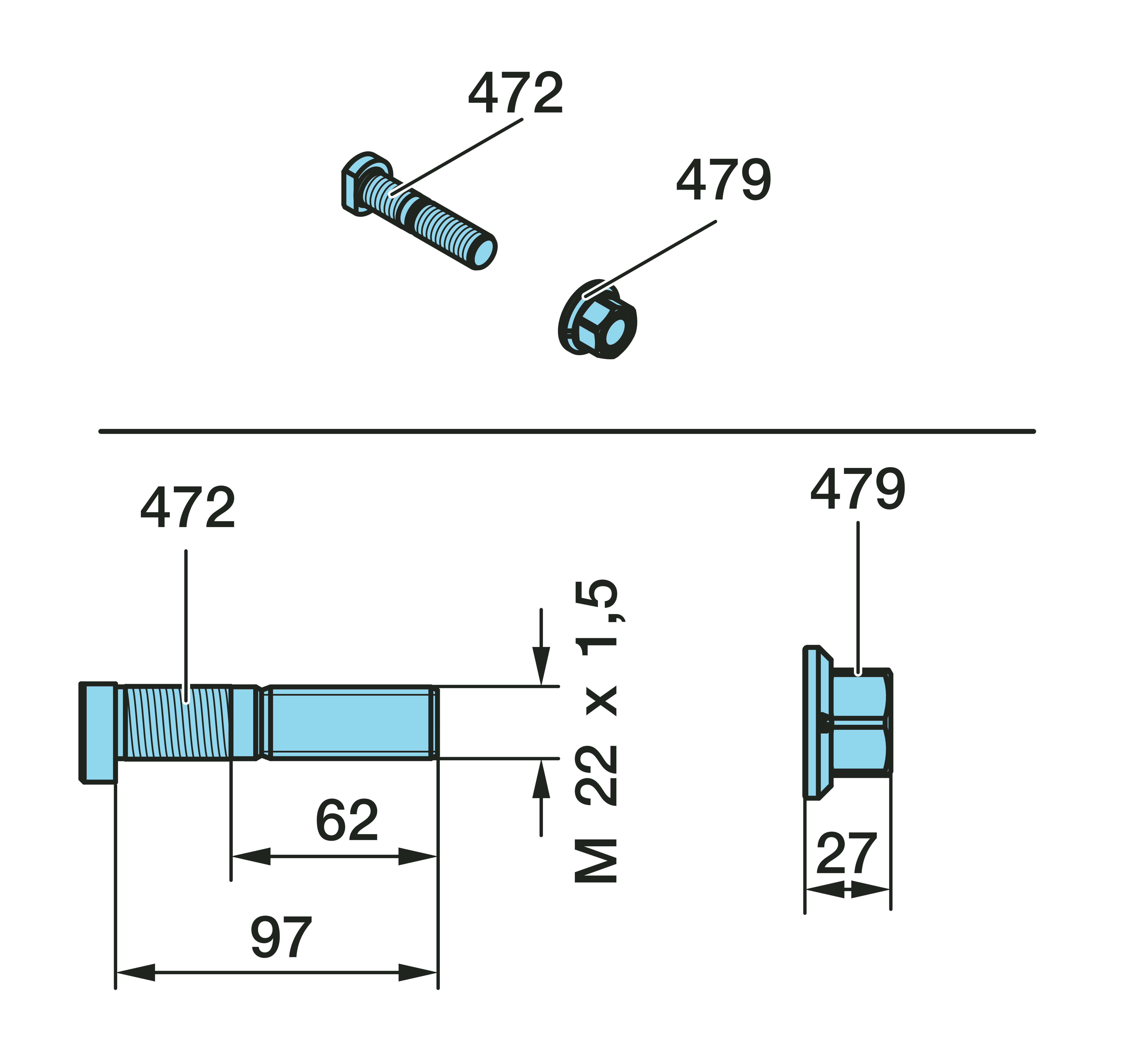 Dimension: M 22 x 1,5 / 97 / 62