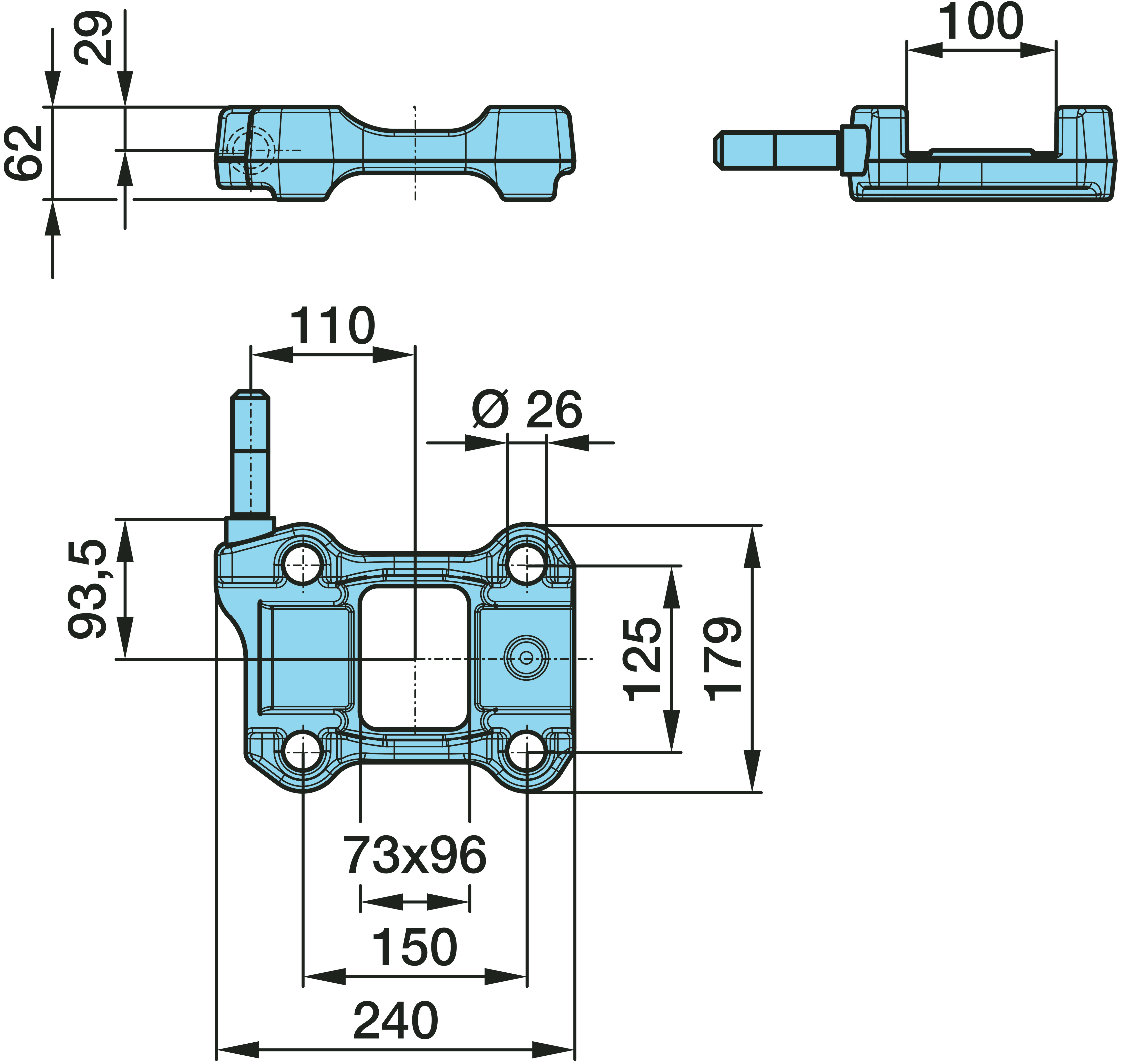 Dimension: 125 / 150 / 73 x 96 / Ø 26 / 29 / 110 / 93,5