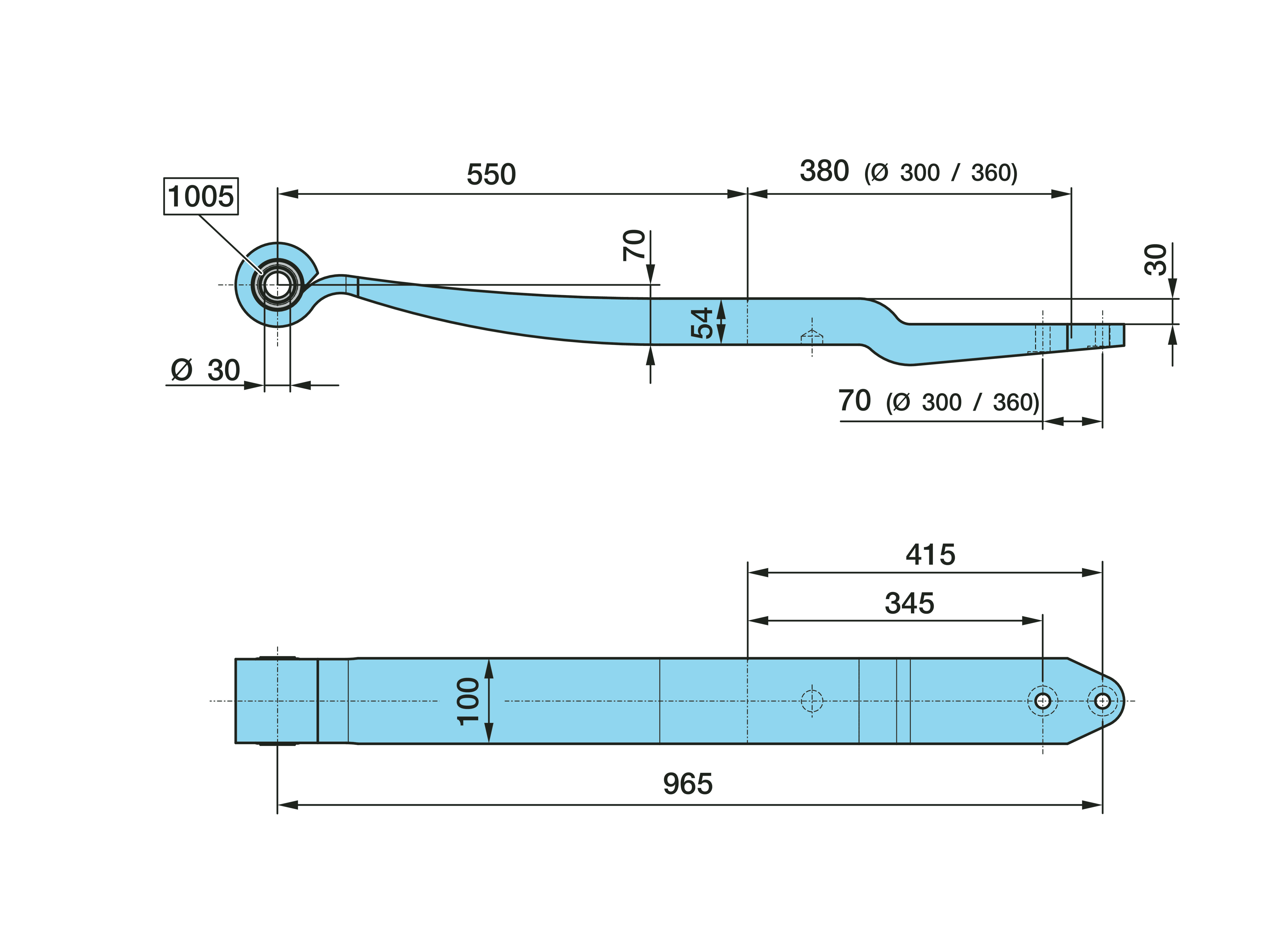 Dimension: Ø 30, 30, 1 x 54 / 100, L1 550 / 380