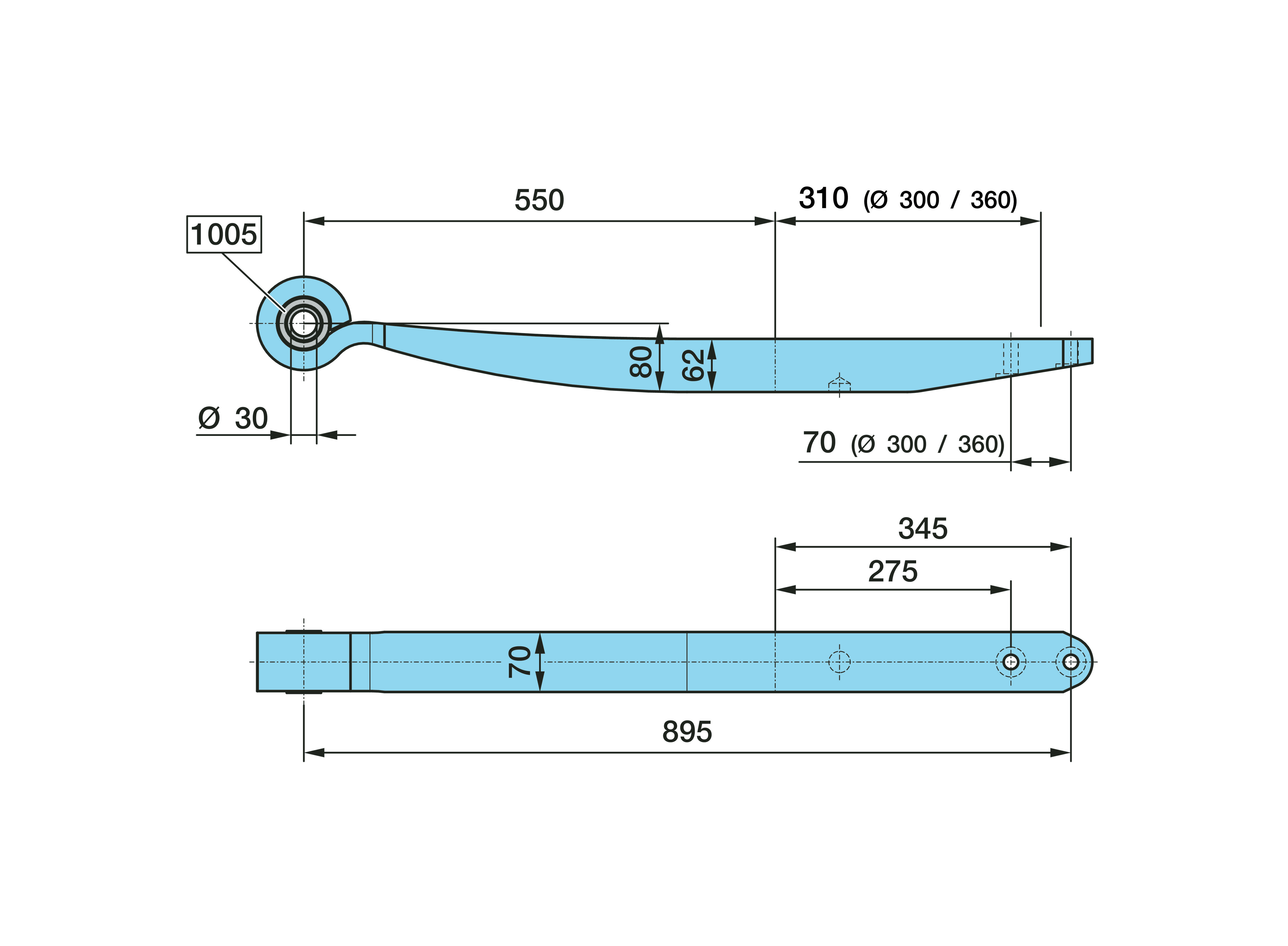 Dimension: Ø 30, 1 x 62 / 70, L1 550 / 310