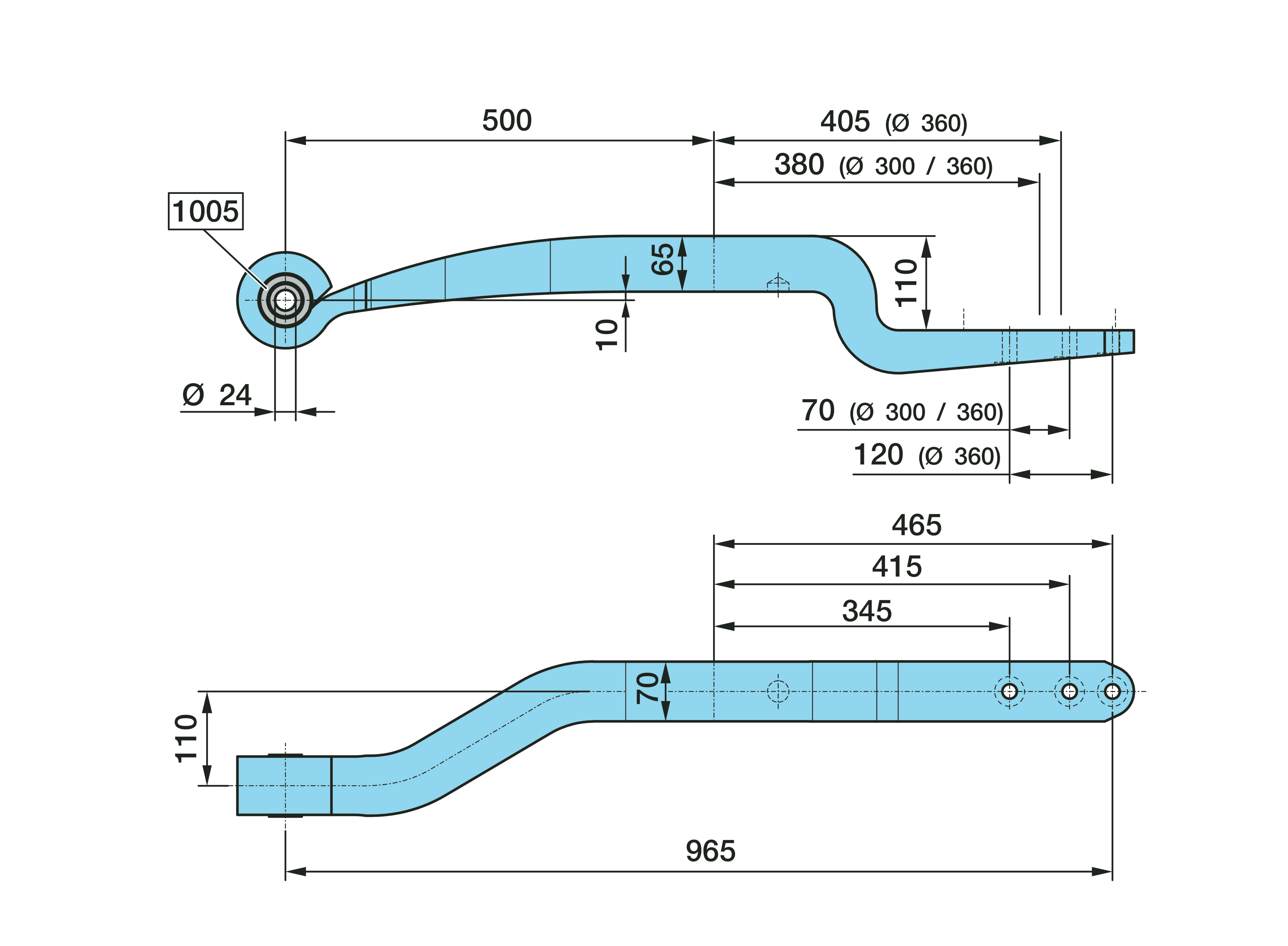 Dimension: Ø 24, 110, 1 x 65 / 70, L1 500 / 380/405