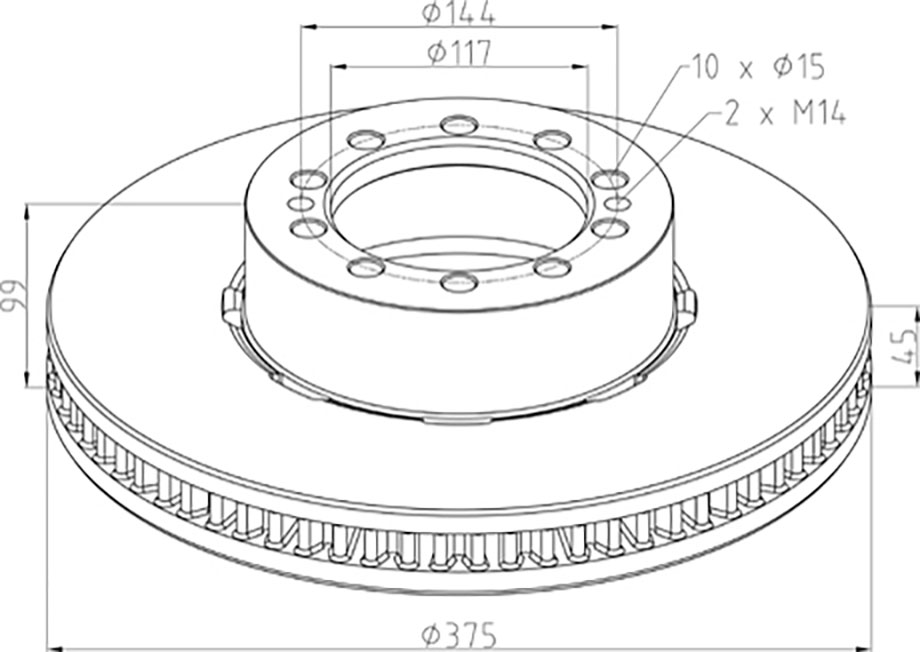 256.042-00A AMG varenr. 256.042-00A Bremseskive1 PE BREMSESKIVE, Ø375 X 99 X 45 MM - P.F. RENAULT